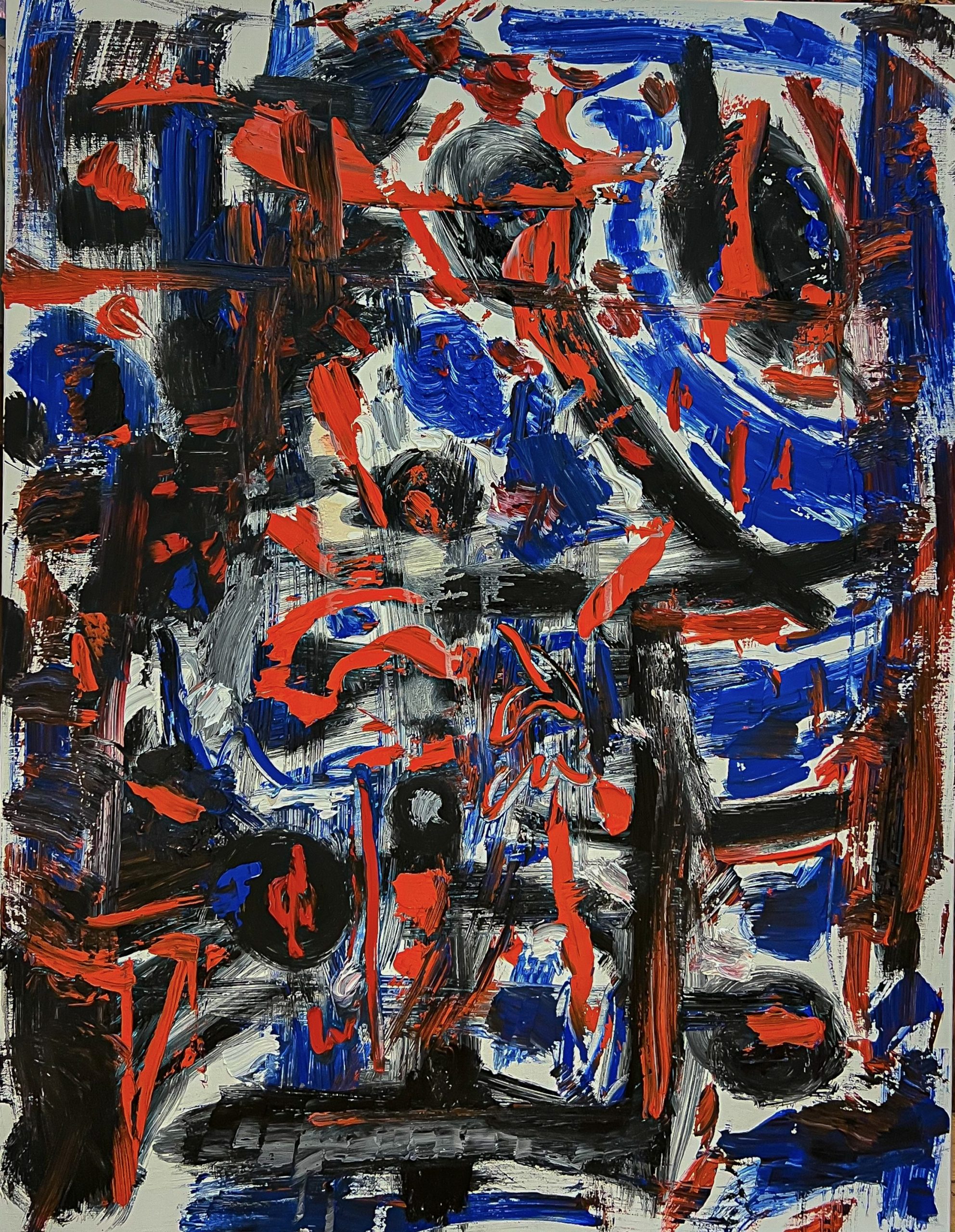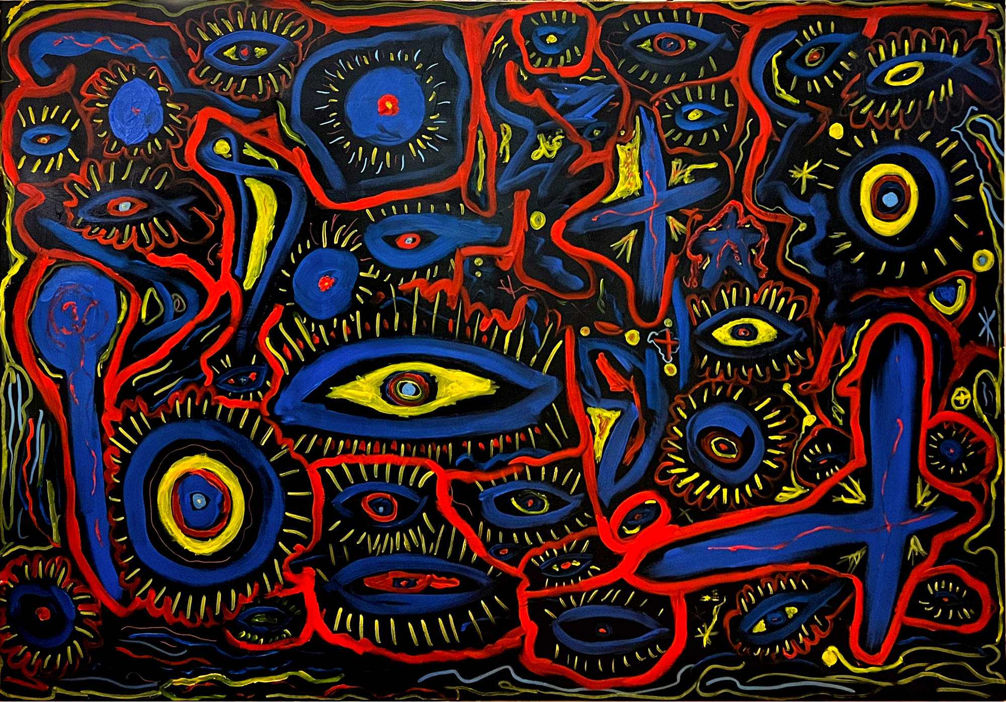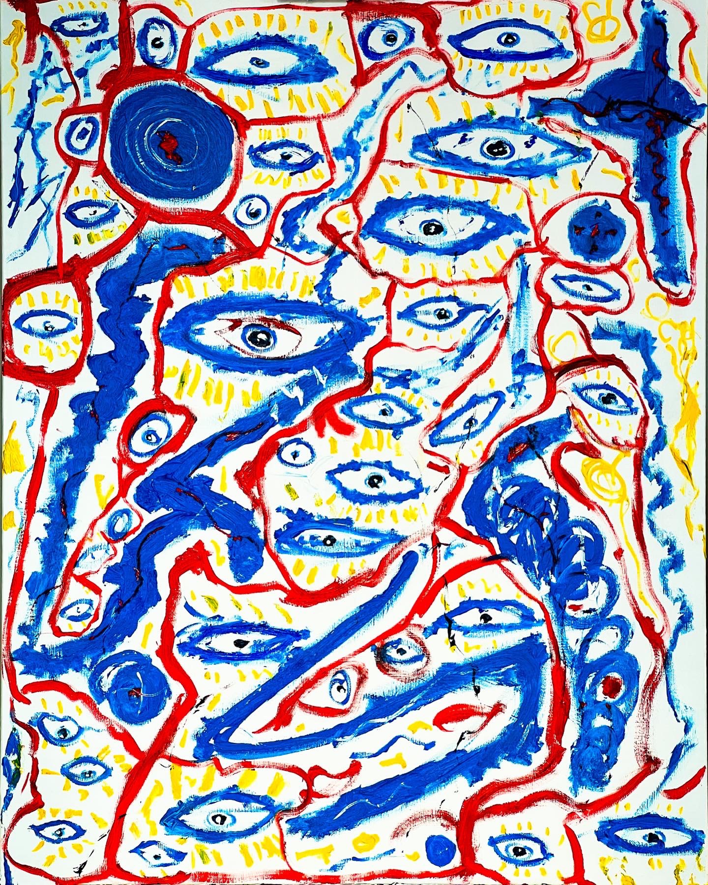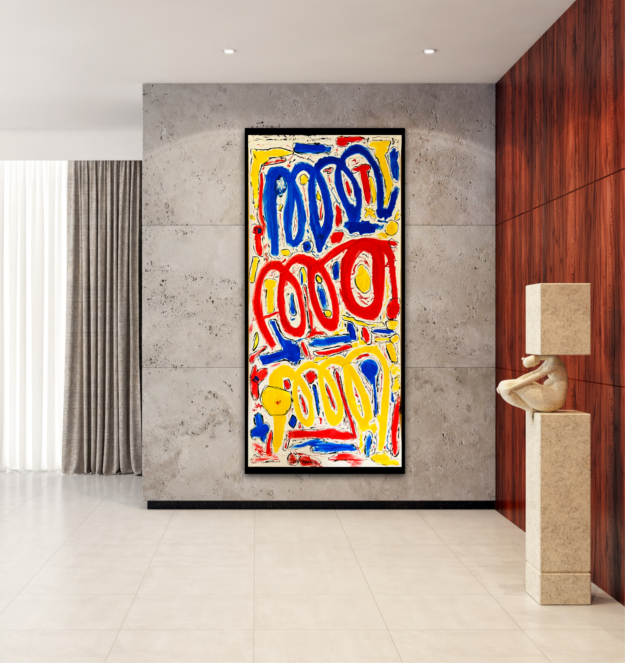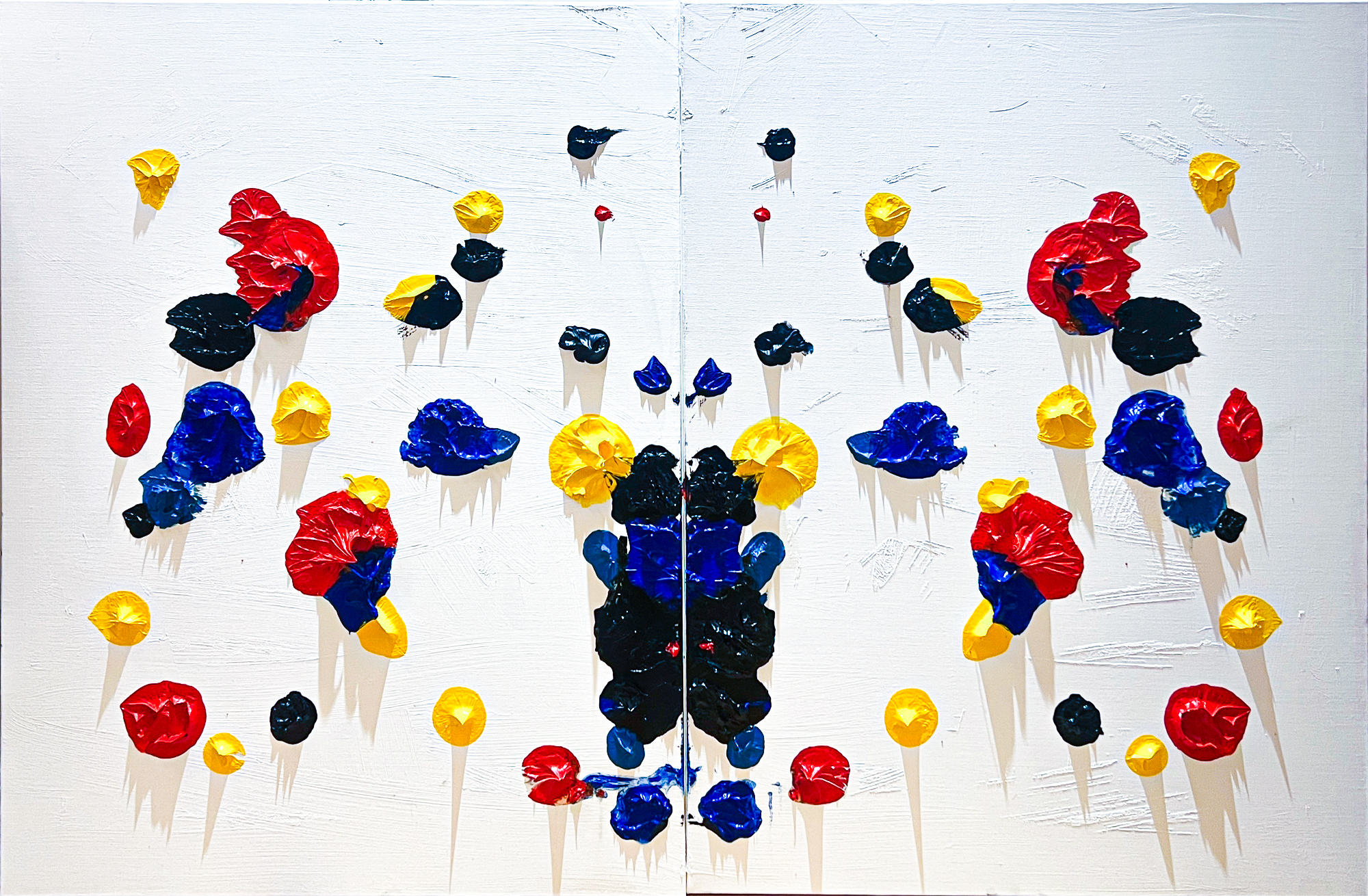 Principalement, je travaille avec des couleurs primaires parce qu’elles évoquent une réponse émotionnelle pure et non filtrée et constituent la base de toutes les autres couleurs. Dans tous les aspects de mon travail, les couleurs primaires sont le point de départ, reflétant les émotions brutes et fondamentales qui animent mon expression artistique.