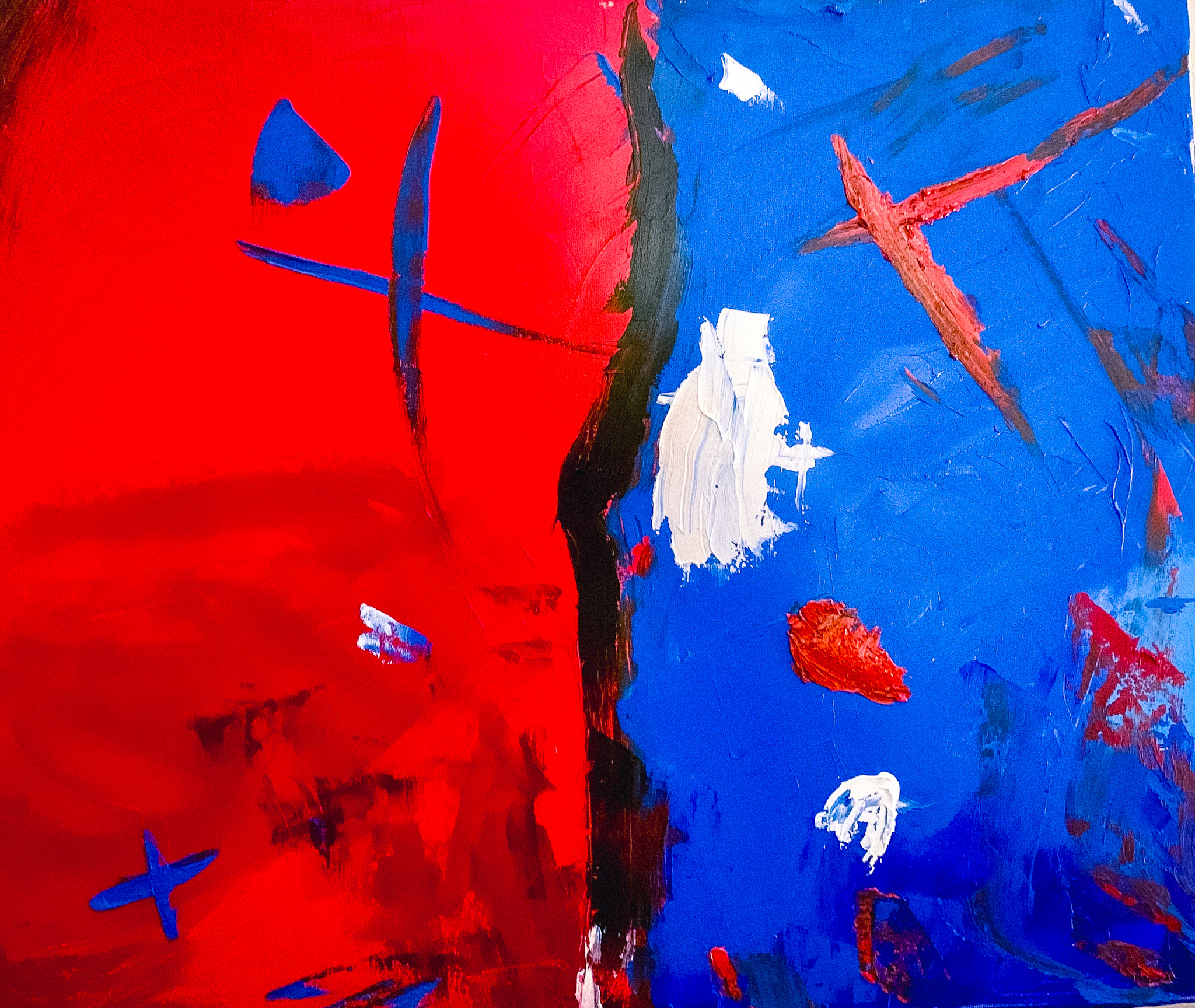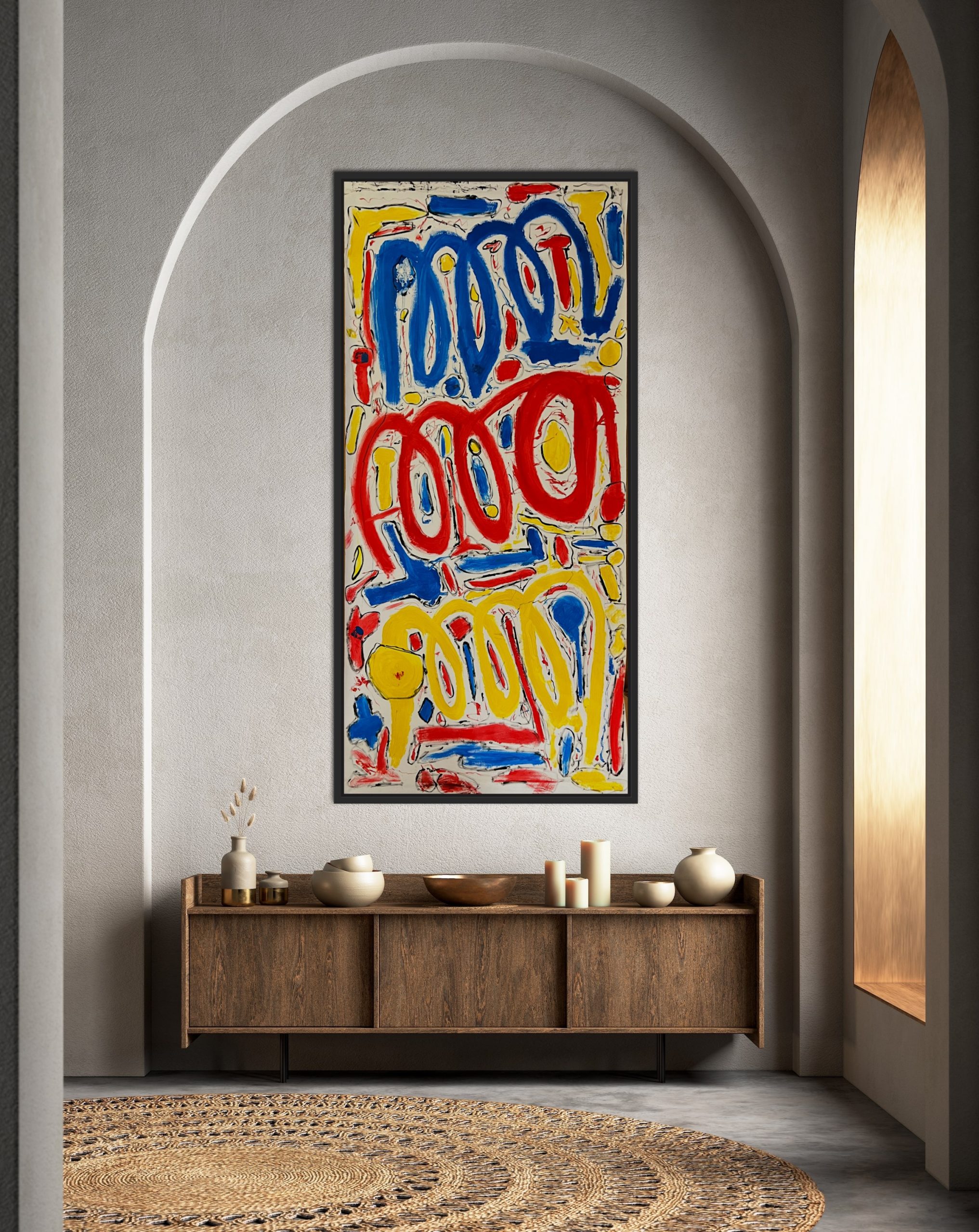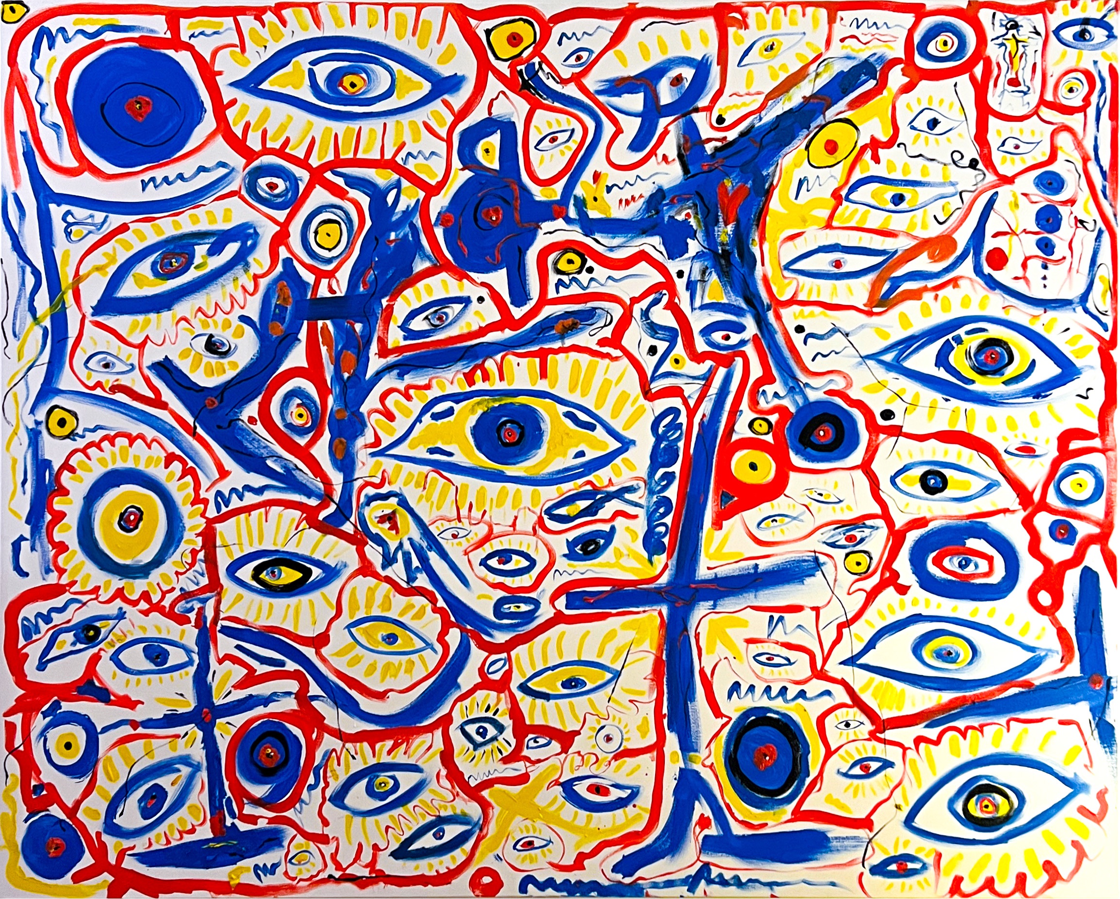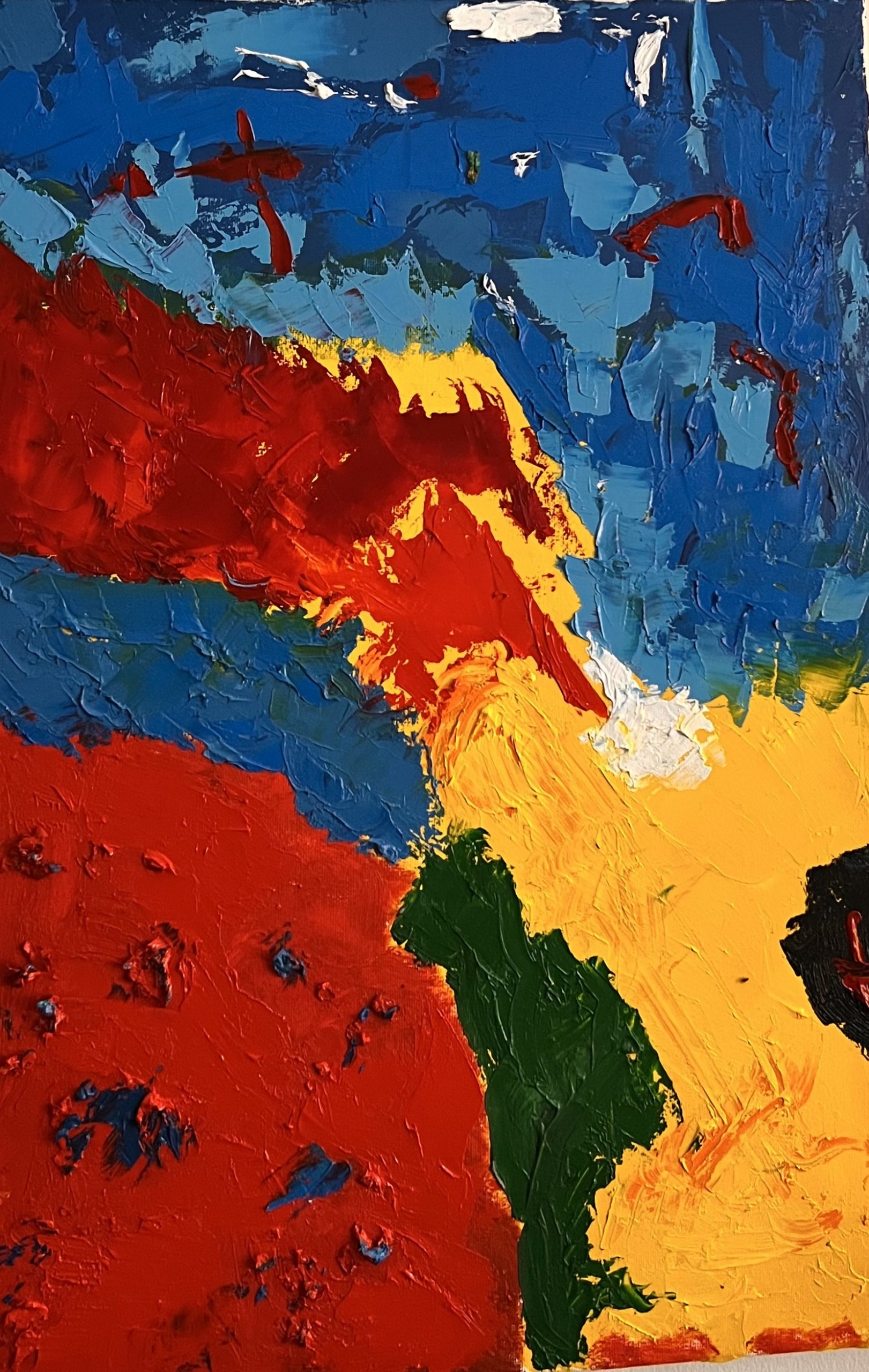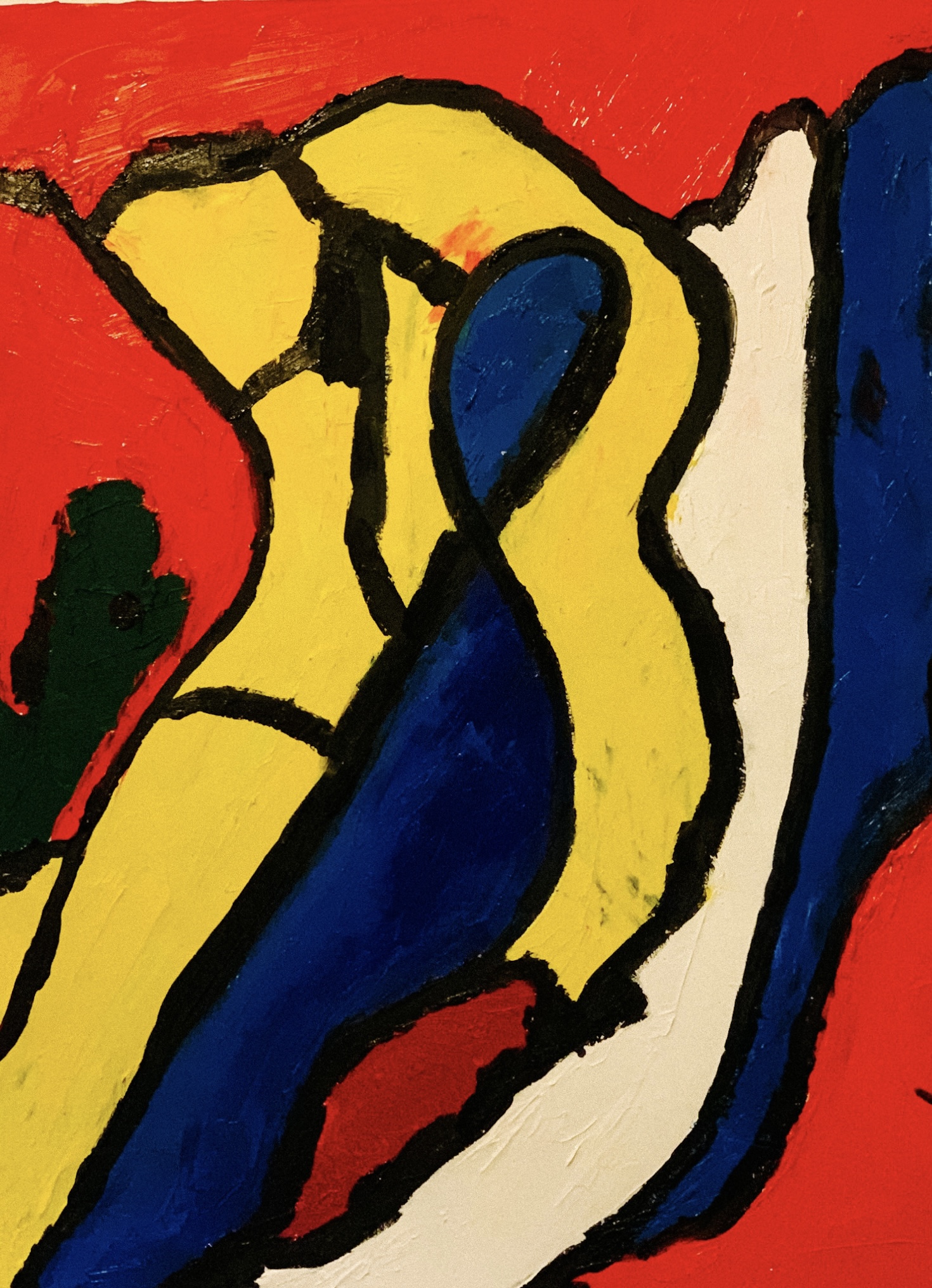 Principalement, je travaille avec des couleurs primaires parce qu’elles évoquent une réponse émotionnelle pure et non filtrée et constituent la base de toutes les autres couleurs. Dans tous les aspects de mon travail, les couleurs primaires sont le point de départ, reflétant les émotions brutes et fondamentales qui animent mon expression artistique.
